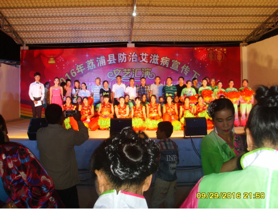 为宣传和普及艾滋病防治知识,增强荔浦县广大人民群众对艾滋病的科学认识,进一步丰富群众业余文化生活,2016年9月29日晚上由荔浦县卫计局、荔浦县文新广体局、新坪镇人民政府主办,荔浦县疾控中心承办的防治艾滋病宣传下乡文艺汇演在新坪镇安民村隆重举行,各相关部门的领导、专家也莅临晚会现场。