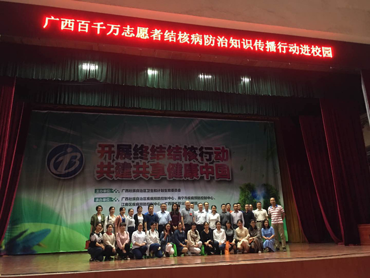 2018年4月28日下午,由广西壮族自治区卫生和计划生育委员会主办、广西壮族自治区疾病预防控制中心、南宁市疾病预防控制中心、江南区疾病预防控制中心、广西理工职业技术学院承办的“结核病防治知识进校园系列活动:广西百千万志愿者结核病防治知识传播行动”在广西理工职业技术学院隆重举办。来自广西卫生职业技术学院、广西建设职业技术学院、广西交通技师学院、广西水利电力职业技术学院、广西工业技师学院、广西轻工高级技师学院五象校区、南宁职业技术学院、南宁沛鸿民族中学桃源校区和江南校区、南宁市第三十四中学、南宁市第三中学五象校区、南宁市第四十一中学、南宁市第一职业技术学校、广西理工职业技术学校的领导、老师代表和学生代表,南宁市各个城区疾控中心的领导和工作人员以及广西百千万志愿者结核病防治知识传播行动的志愿者代表们约1200名师生参加了现场活动。