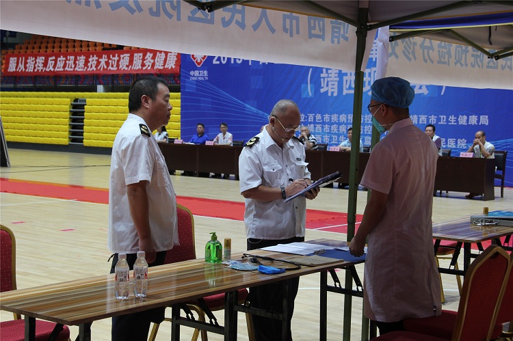 观摩本次演练的有百色市疾控中心领导、专家及应急队,百色市各县(区)疾控中心主任和负责卫生应急的工作人员,还有靖西市各乡(镇)卫生院院长、防疫专干共近100多人。