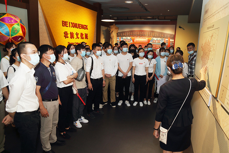 活动开始,大家共同参观了广西民族博物馆。广西民族博物馆不仅呈现了八桂大地的风土人情和文化积淀,更彰显了广西人民的奋进精神与对未来美好生活的憧憬向往。通过讲解员细心讲解,团员青年们对壮族文化有了进一步的了解,同时对广西建设发展所取得的成就有了更清晰深刻的认识。