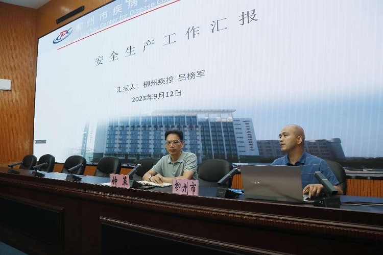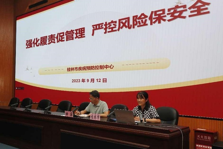 柳州市疾控中心、桂林市疾控中心在会上进行了经验分享,全体参会人员集中观看了安全生产警示片。