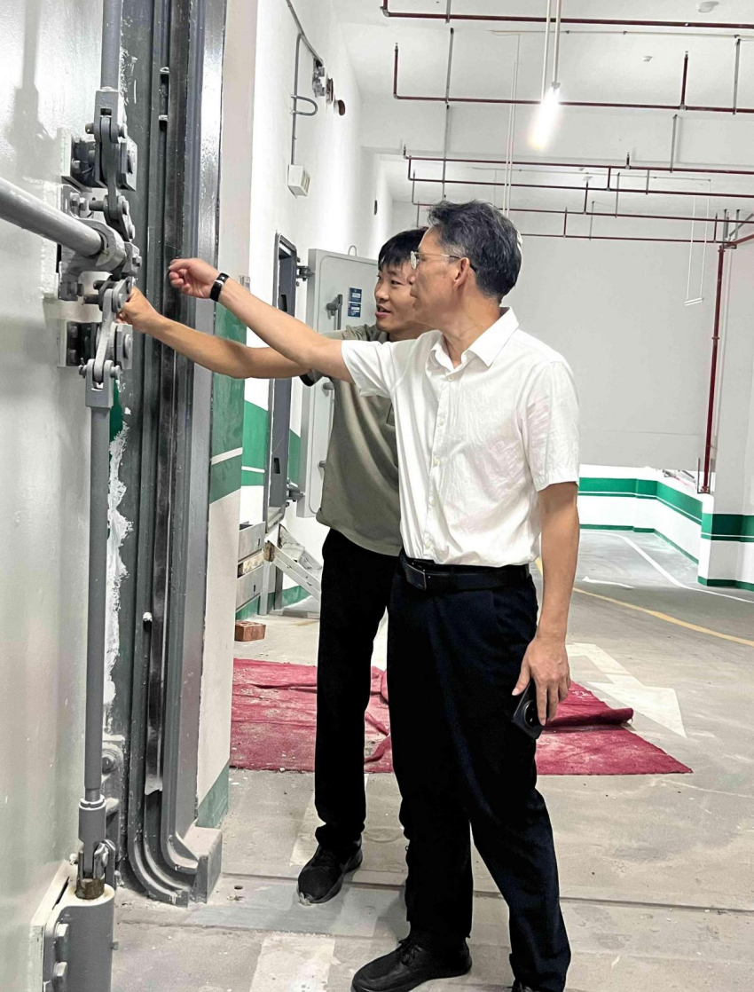 检查组详细了解了相关部门安全生产工作开展情况,对房屋防水性能进行细致排查,对渗水较为严重的部位提出了整改要求,确保隐患及时消除。在新大楼项目工地检查时,钟革强调,要重点关注施工现场的临时用电、消防设施、围挡围墙稳定性、排水防涝措施等环节,相关部门要切实提高安全责任意识,克服麻痹、大意、松懈心理,积极采取有效措施防御台风天气。