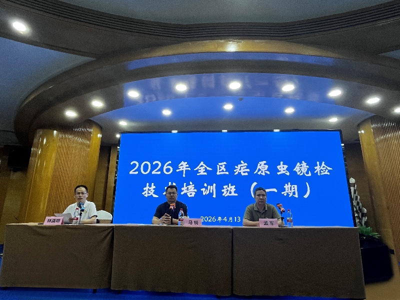 为持续巩固全区消除疟疾成果,精准防范输入性疟疾再传播风险,全面提升基层防控专业人员业务能力,自治区疾控中心于2026年4月12日至17日在南宁市举办2026年全区疟原虫镜检技术两期专题培训班。全区各市、县(市、区)疾控中心寄生虫病防制业务骨干共120余人参加培训,自治区疾控局卫生与免疫规划处副处长马锐出席开班仪式并讲话。