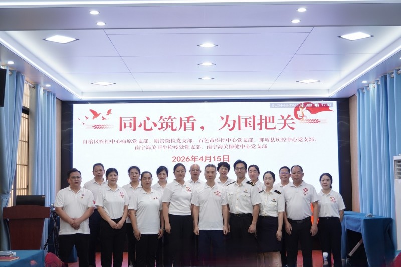 为扎实推进边境地区疾控中心党的建设,提升国门疾控中心重大传染病防控效能,促进国门疾控与海关口岸在党建与业务方面的交流,2026年4月15-16日,自治区疾控中心联合百色市疾控中心、南宁海关卫检处、南宁海关保健中心在那坡县疾控中心、南宁海关平孟口岸开展“同心筑盾 为国把关”党建联建与技术指导活动。