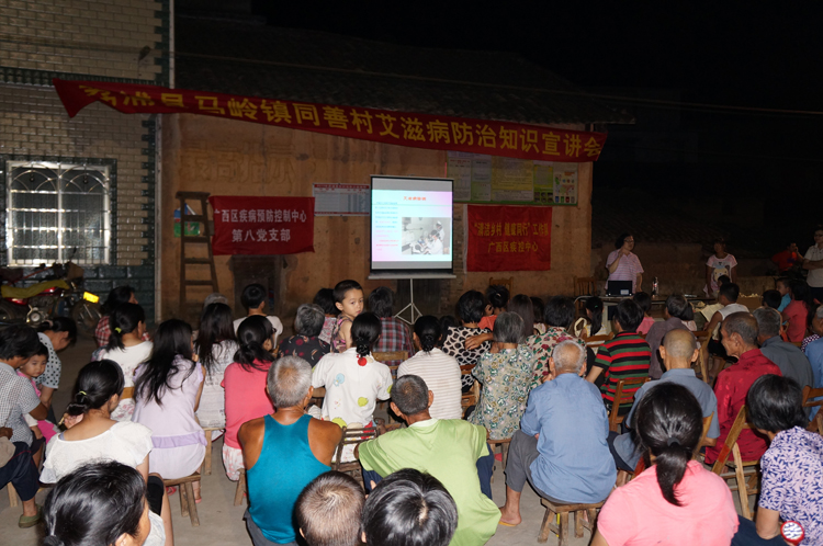 适逢当地农忙时节,村民们白天忙农活,晚上有一些空闲时间。党员们不辞辛苦,发扬连续作战的精神,吃过晚饭后在晒谷场上摆开了宣讲阵营,和村干一起组织村民们进行授课,一些留守儿童和老人也加入到了听讲队伍,发放宣传资料,刘伟书记以播放幻灯的形式图文并茂进行宣讲,还和听众们进行了互动,开展艾滋病预防知识宣传,村民们热情高涨,兴趣很高,积极踊跃提问并回答问题,放电影式宣讲让村民们学到了不少艾滋病的预控知识。