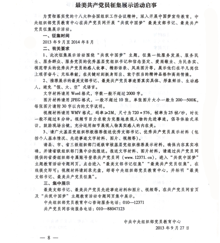 关于组织党员参与共产党员网“共筑中国梦”学习交流活动的通知